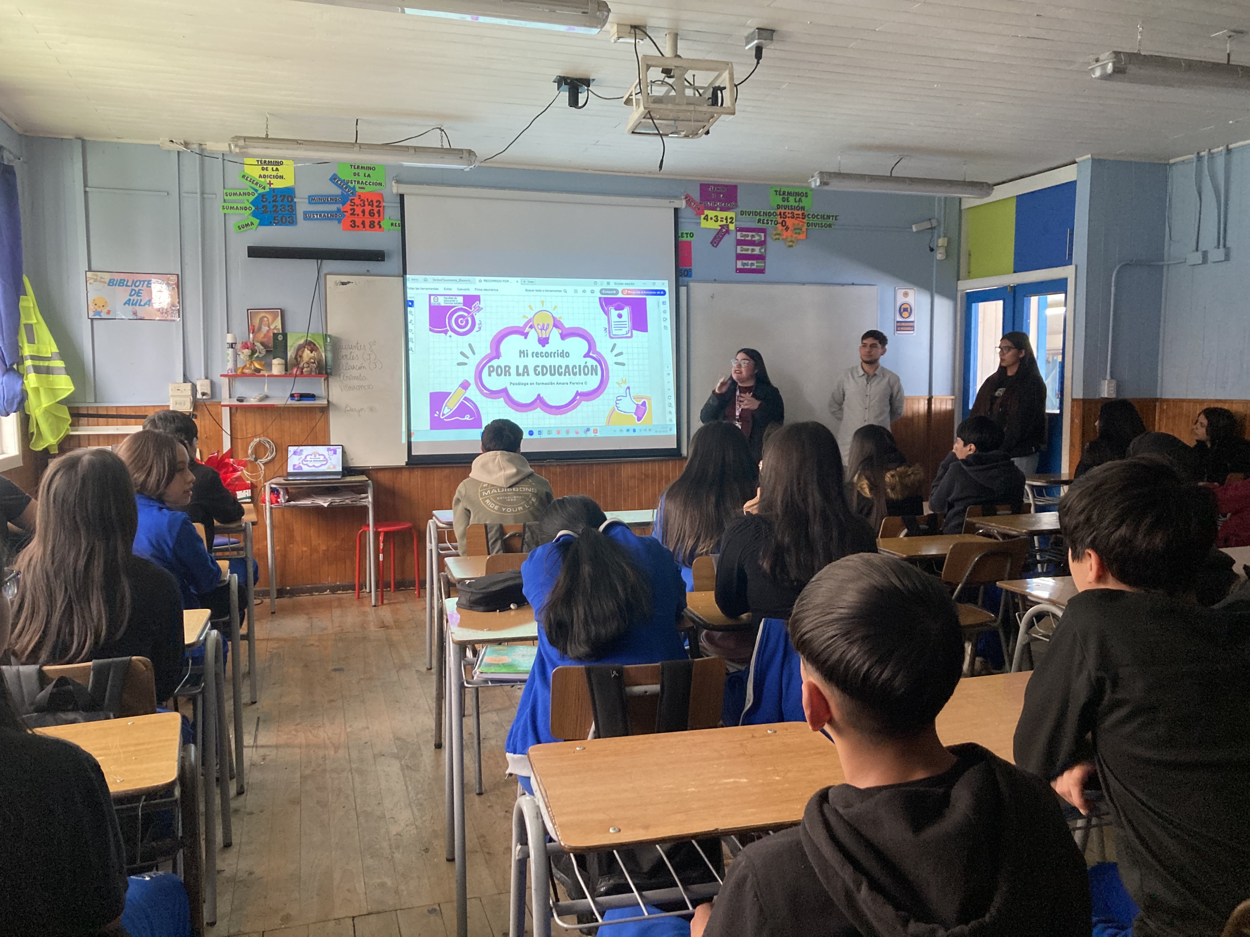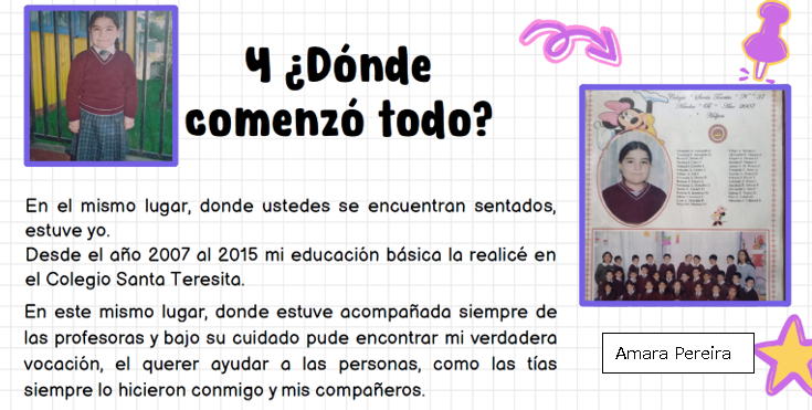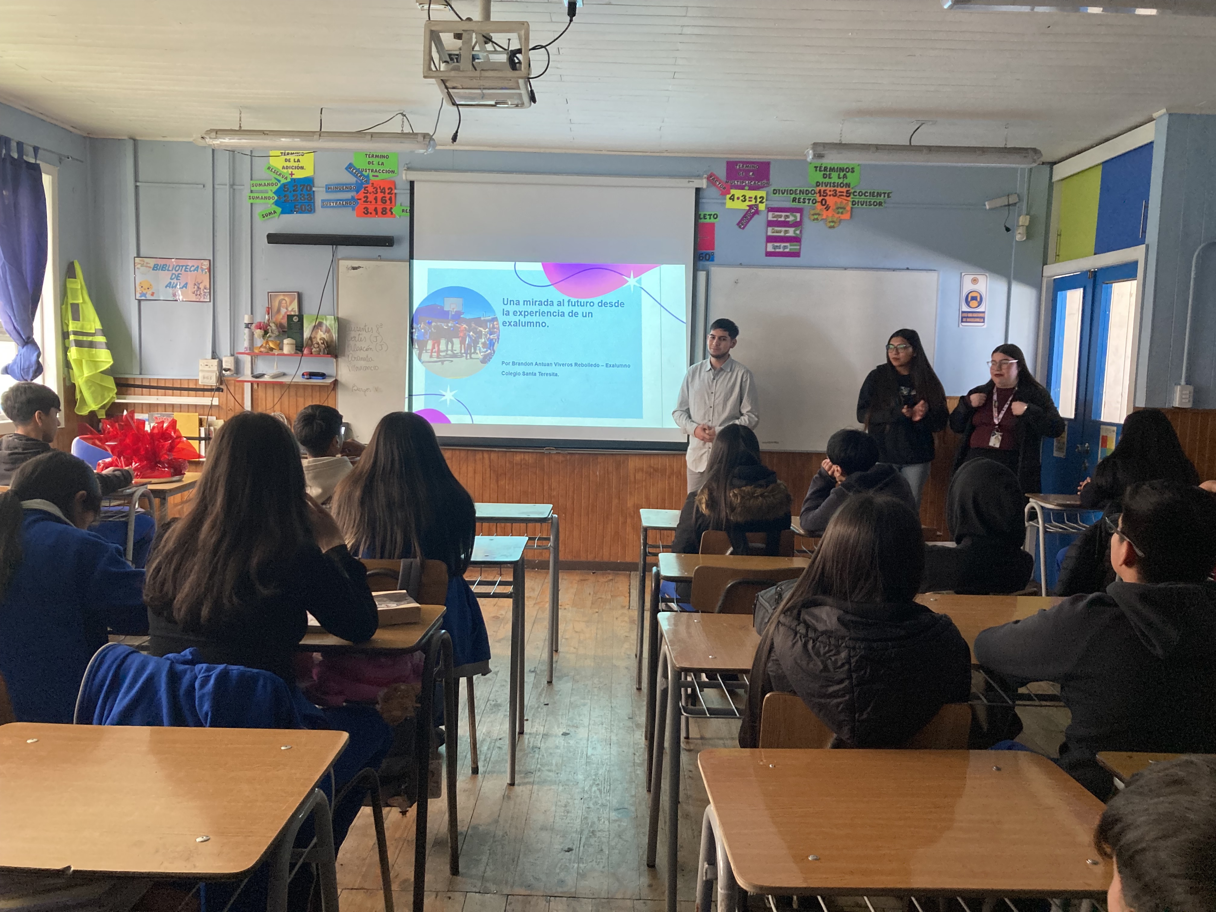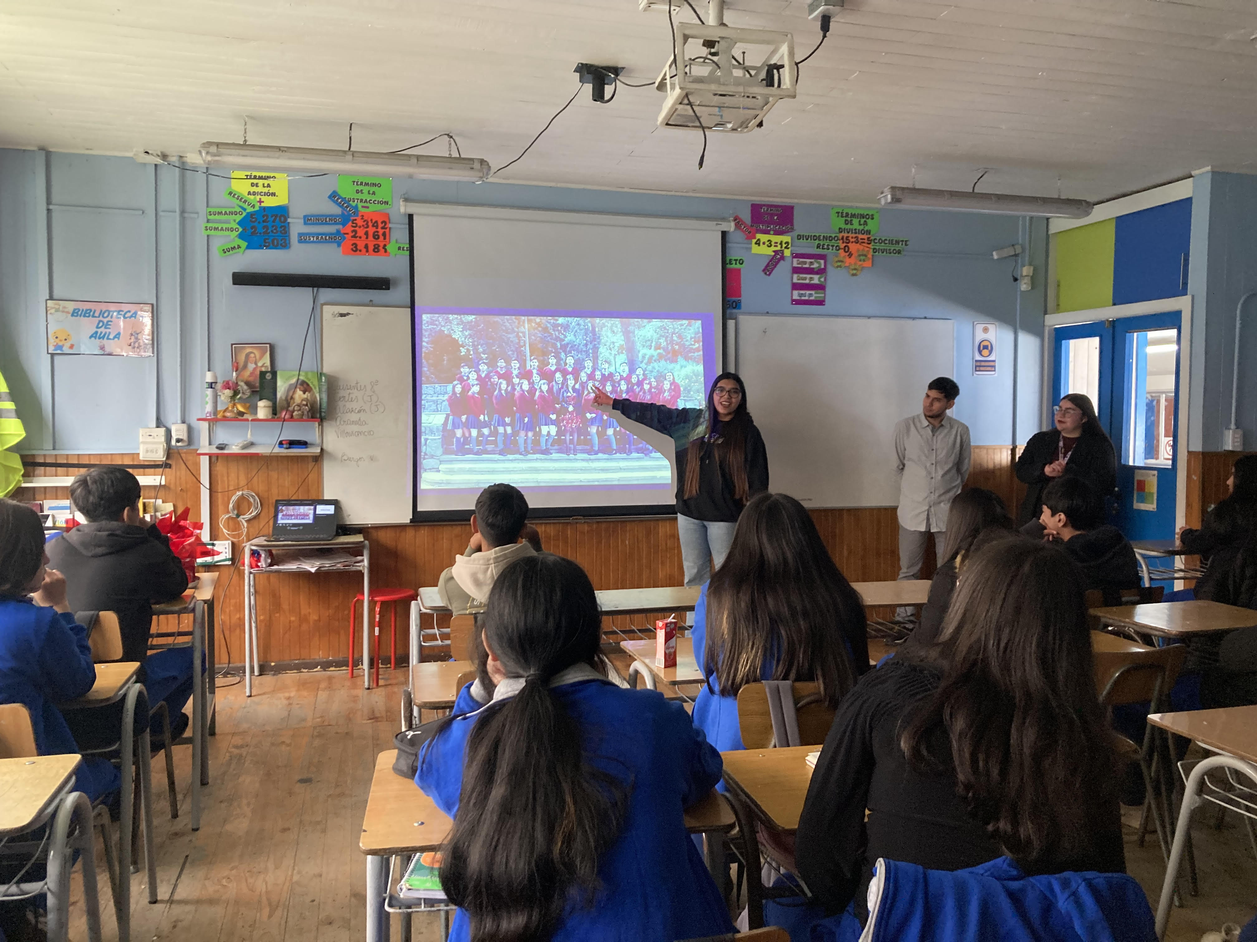 Para esto se invitó a 3 exalumnos de distintas generaciones egresados de nuestro colegio: Amara Pereira (2015), Brandon Viveros (2016) y Constanza Arroyo (2018), quienes hoy son destacados estudiantes universitarios en sus respectivas casas de estudio. Compartieron su experiencia de formación académica con el curso, para motivarlos y brindarles desde su perspectiva la importancia del estudio para su futuro profesional y personal.